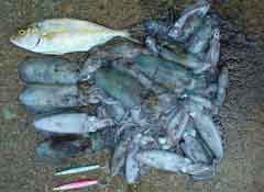 その後、エギングに変更。エギのローテーションはラインの先端に「クイックスナップ」をセットしたから簡単にできた!!その結果、午前10時半までに32杯ゲット!!今後はアオリイカはサイズアップしてくるし、シオもいいときは30〜40cm級がよくヒットするからまた出掛けたい。 |