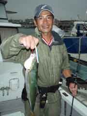 10月14日(月)、友人のプレジャーボートで明石沖へジギングに行きました。期待の高まる朝一、撃投ジグ125gのグリーンGでジャカジャカ5回のストップにより3投目でヒット、サイズは私の今期最大50cmでした。ヤッターと叫びたくなるほど嬉しい1尾でした。これで気分的に楽になりましたがこの後が全くでした。でも楽しい1日でした。 |