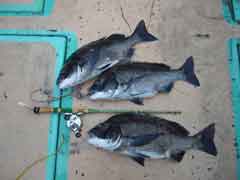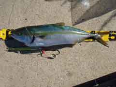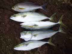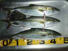 小型の尾長グレ(20〜27cm)がエサ取り状態で厄介だったが何とか40〜45cmのハマチと40cm弱のイサキをGET!