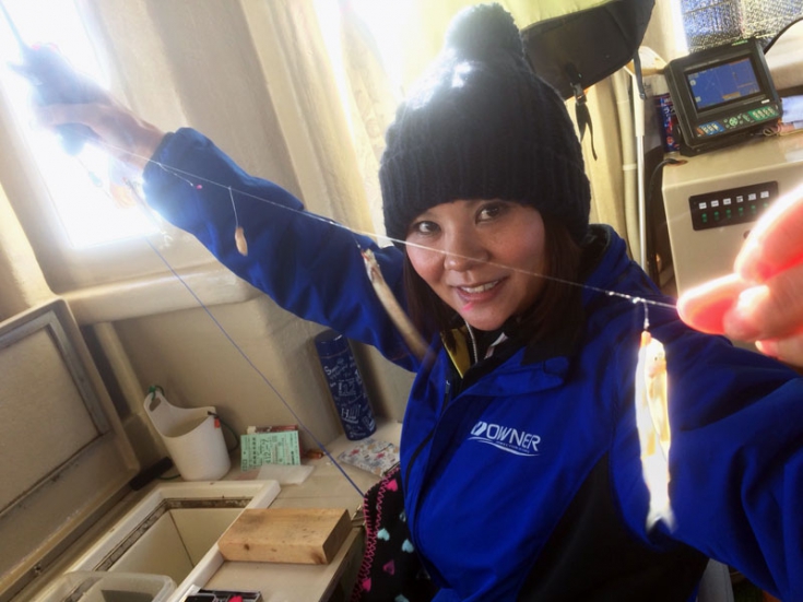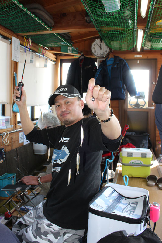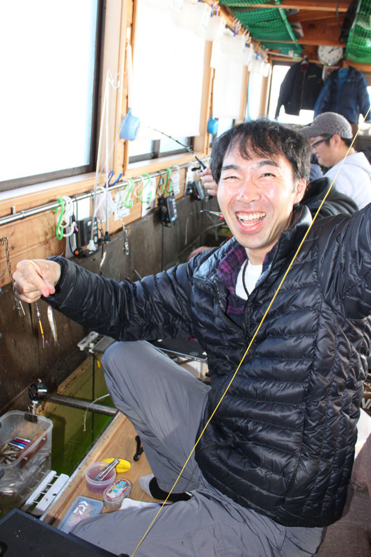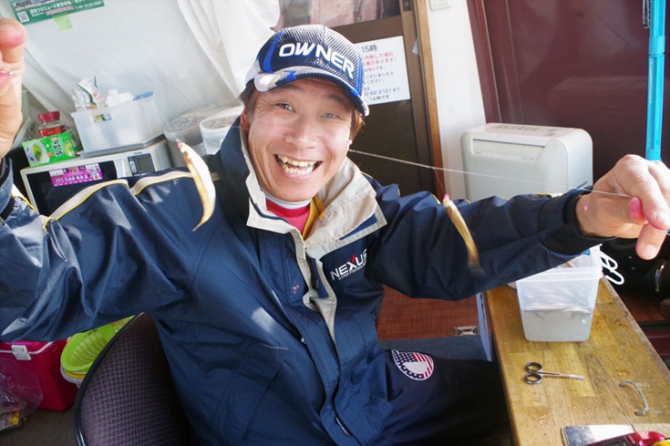 終始「時短ワカサギ7本仕掛1号」を使用し、前半から渋い状況のなか底ベタで我慢の釣り、それでも1時間に1袋の餌を使うハイペースな手返しを繰り返し、後半にかけて良くなってきた状況を見事につかみ、渋いながらも582匹と好釣果でした。