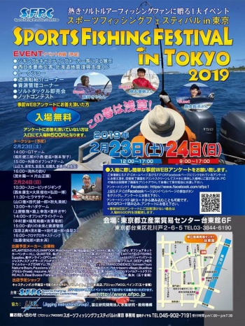 2月23日(土)~24日(日)、東京都立産業貿易センターで開催の「SPORTS FISHING FESTIVAL in TOKYO 2019」に出展いたします。