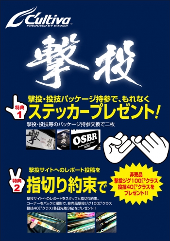 ショア青物特化サイト「撃投サイト」へのレポート投稿約束を弊社スタッフと指切りし、コーナーをバックに撮影いただければ、素敵なプレゼントがございます。
