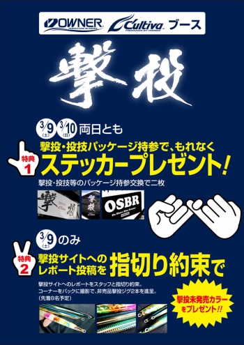 撃投ジグ・投技ジグパッケージと交換でステッカー2枚プレゼントは両日とも実施。