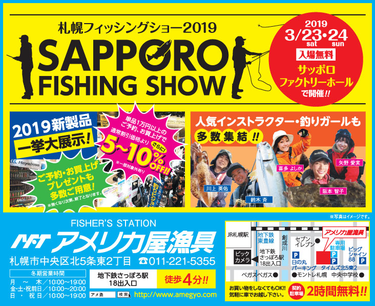 2019年3月23日(土)~24日(日)開催の札幌フィッシングショー2019に出展します。