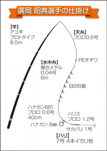 開始4分で廣岡選手は1匹目を掛けて、その後順調に数を伸ばして込み7匹で前半終了。