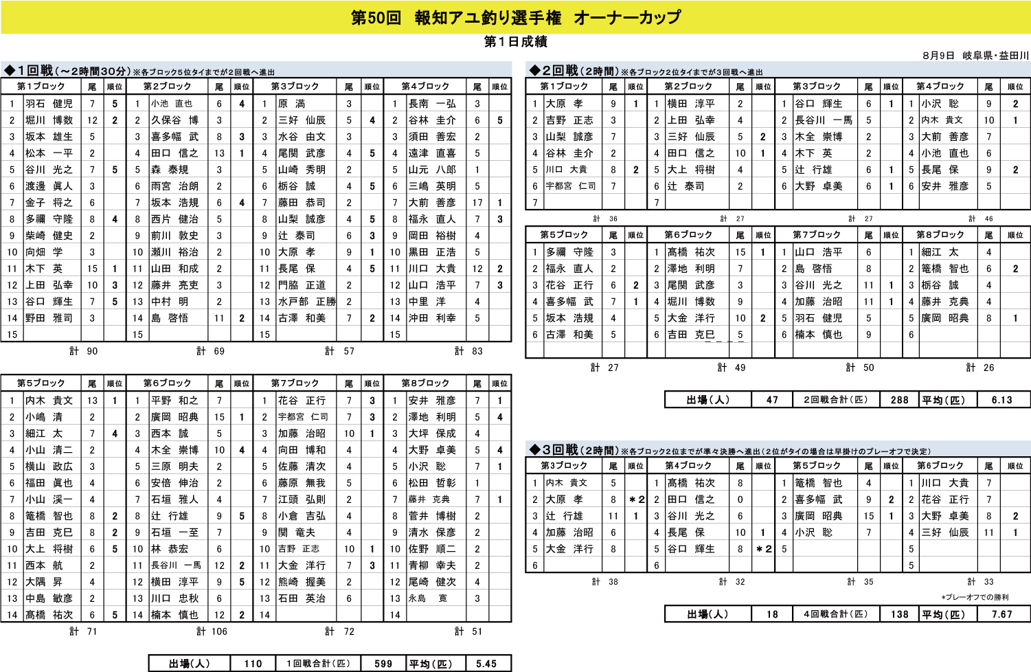 第50回報知アユ釣り選手権オーナーカップ決勝大会