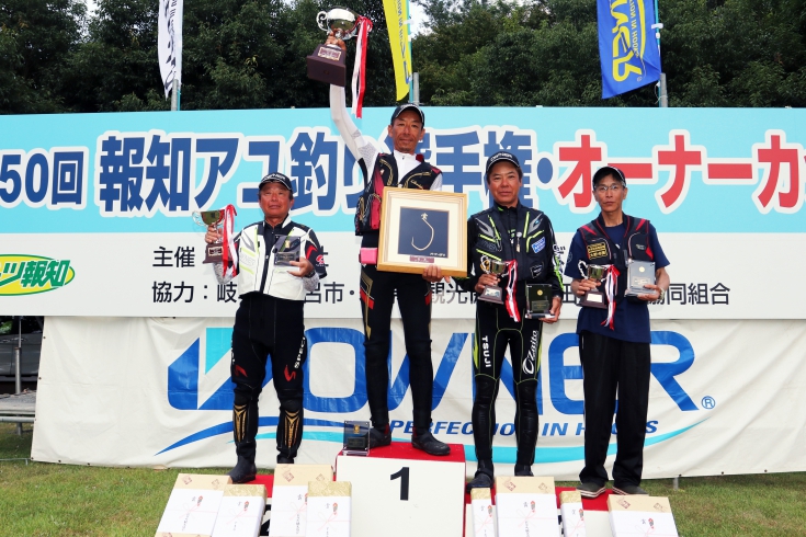 | 賞 | ◇優勝=オーナーカップ、報知杯、賞状 ◇準優勝~3位=オーナーカップ、報知杯、賞状 ◇ベスト8、ベスト16=オーナーカップ ◇全員に決勝進出記念賞を贈る。 ※優勝者は第51期報知アユ釣り名人戦に出場する。 |