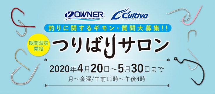 オーナーばりでは、上記期間中限定で釣り鈎をメインに釣具や釣り方など、釣りに関する様々な質問を募集いたします。