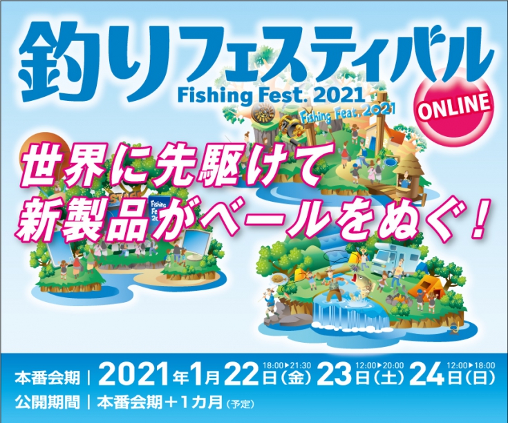 1月22日(金)18:00~21:30、1月23日(土)12:00~20:00、1月24日(日)12:00~18:00に釣り業界で初めてオンラインで開催されるイベント「釣りフェスティバル2021」に出展いたします。