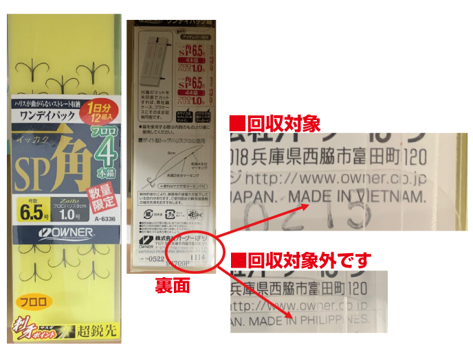 ■対象ロット 製品パッケージ裏面記載が MADE IN VIETNUM .のもの(MADE IN PHILIPPINESのものは対象外です)