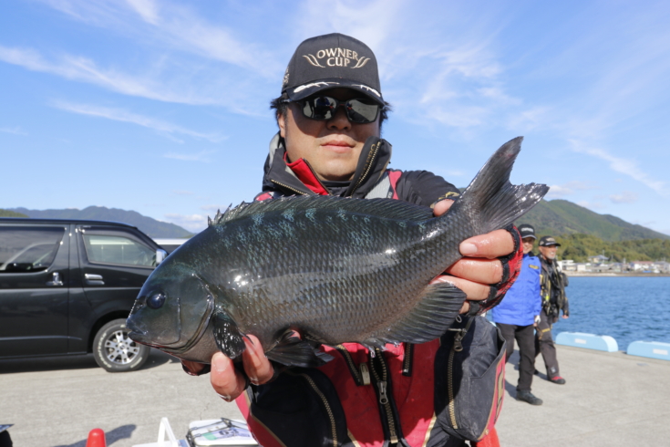また、数年前に開催された日振島大会で準優勝を果たしていますが、いつかは金勝杯を優勝したいという気持ちが常にあったこと、長年師匠として慕ってきたオーナーばり・ザイト磯インストラクター山元八郎さんにもこの結果をお届けできたことは本当に嬉しく感じている、とのことでした。
