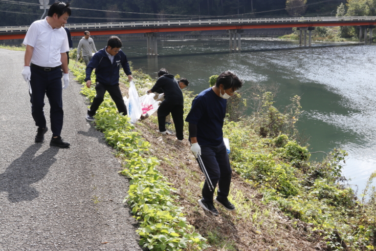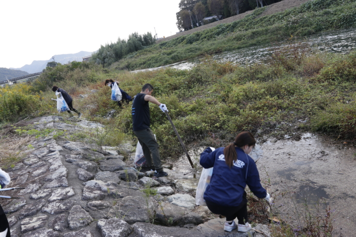 公益財団法人日本釣振興会が提唱する「水辺感謝の日」に合わせ、10/27、弊社も水辺の環境美化を目的として、兵庫県西脇市を流れる加古川の支流杉原川西仙寺橋上下約500mを社内の有志20名で清掃いたしました。