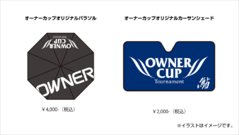 本大会の開催にあわせ、大会会場限定販売として「オーナーカップオリジナルパラソル」および「オーナーカップオリジナルカーサンシェード」を販売いたします。
