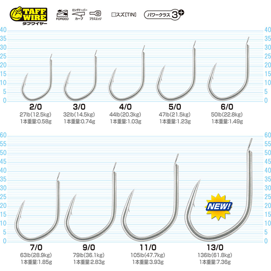 パワー系ジギング実績No.1のジギングフックに13/0が登場