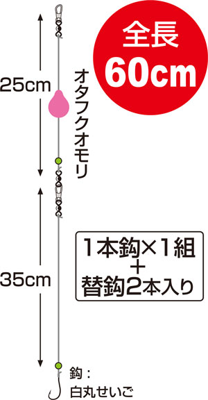 全長60cmで、ショートロッドでも投げやすい! ●アタリ直感で食い込みのいい遊動式 1本鈎×1組+替鈎2本入り |