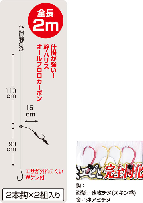 ●コマセと完全同化する実寸ピンク擬似 全長2m 2本鈎×2組入り |