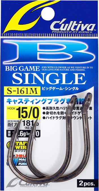 ヒラマサ30kg、マグロ200kg、GT50kgクラスを、「狙って獲りたい」アングラーに贈るアルティメットハイドラグ仕様のシングルフックです。 ●魚肉を広く捉えてハイドラグでも口切れ、身切れに対応するワイドフォルム。 |