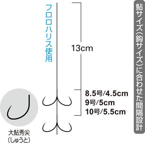 | 品番 | 上鈎 | 下鈎 | ハリス (フロロ) |