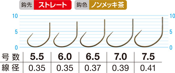 短軸・広角の細軸ストレート+ノンメッキで掛ける超攻撃型数釣り鈎