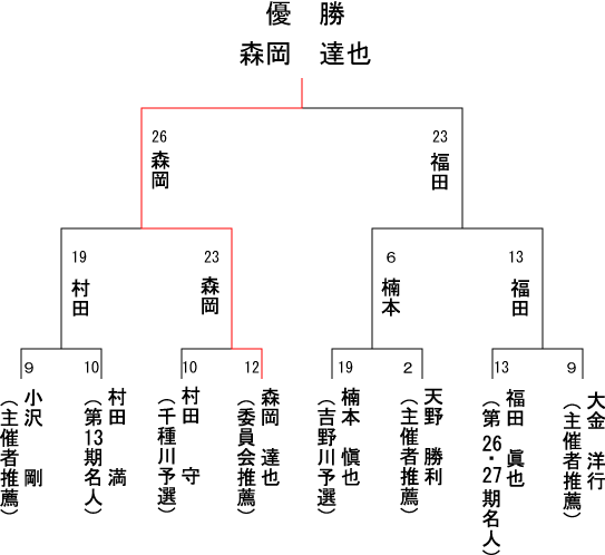 トーナメント方式で行われ、森岡達也選手が初優勝されました。