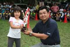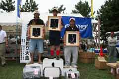 表彰式では、オーナーばり中道成之社長より鈎額・記念品が各部門の入賞者に手渡され、喜ばれた。 |