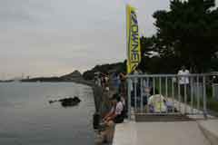 また、ベテランの方は仕掛けを遠くに投入し、スズキ・セイゴを狙い、華麗な竿さばきで、スズキの強烈な引きを堪能していた。 |