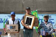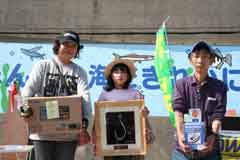表彰式では各部門の上位を発表後、デジタルカメラや液晶テレビなどを揃えたラッキー賞の抽選会をおこない、こうして無事「第2回オーナーばり海釣り大会(大阪湾)」が終了した。 |