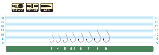 より鋭いハリ先を実現するために、通常のメッキ処理でなく、特殊加工を施すことで更なる刺さりを実現。 また、ストレート先により、速攻アワセや向うアワセにも即対応。