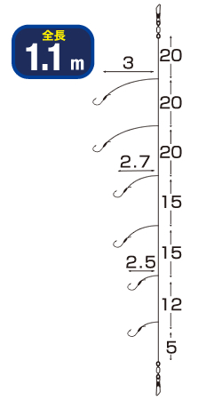 | 号数 | ハリス号数 | 幹糸号数 | 希望本体価格 | 使用鈎 | JANコード |