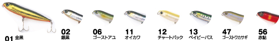 | 01 | ¥1,200 | ST-31 #6#8 | 金黒 | サイズ:8cm/7.5g | 4953873298844 |