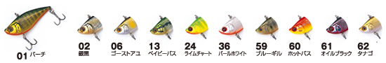 | 01 | ¥950 | ST-36BC #8 | パーチ | サイズ:6cm/9g | 4953873225017 |