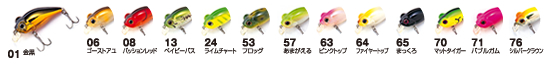 | 53 | ¥1,200 | ST-36BC #8(F)#10(R) | フロッグ | サイズ:4.8cm/6.5g | 4953873155611 |