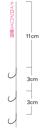 広範囲を攻める!左・右ヒネリの鈎を、左ヒネリ→右ヒネリ→左ヒネリ、もしくは右ヒネリ→左ヒネリ→右ヒネリと左右に広がるように仕上げ、掛かる範囲を拡げた。