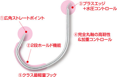 ※このフックは繊細なセッティングを必要としますので、過度なドラグ設定や必要以上の負荷をかけるとフックが変型する恐れがあります。ご注意ください。