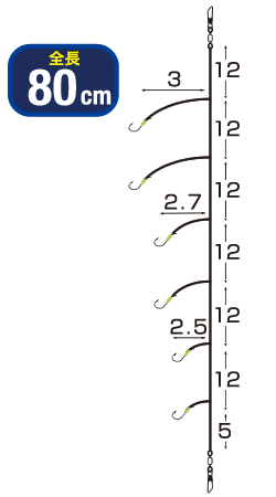 | 号数 | ハリス号数 | 幹糸号数 | 希望本体価格 | 全長 | 使用鈎 | JANコード |