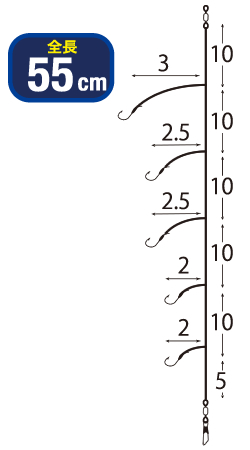 全長55cmで絡まず手返しUP!ハリス長と間隔が決め手!ケイムラ鈎で集魚効果大!