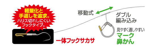 | 7 | ¥480 | 仕掛糸 1.2号、白一体サカサ3号 | マーク鼻かん使用 | 4953873208942 |