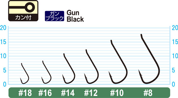 一瞬のアタリを貫く鋭い鈎先。結束し易いカン付仕様。