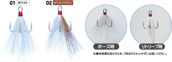 ルアーの動きや水流に反応し、脈打つようにアクション。