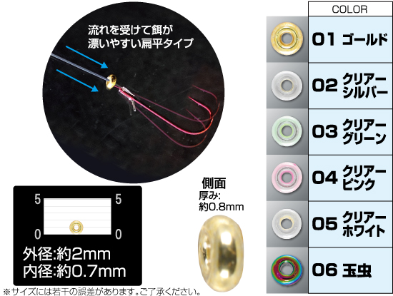 キラッと輝き集魚効果抜群!ドーナツ型独特のフラッシング効果が喰い気を誘う。