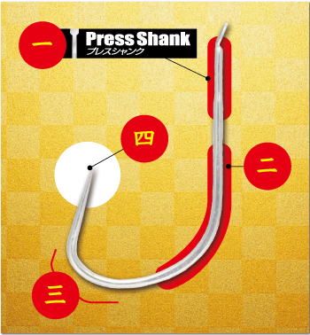 一、ハリスの回り込みや、ズレを防止する「プレスシャンク」。