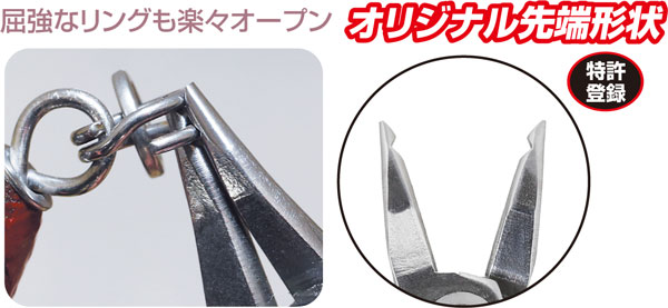 ルアー製造工場の現場から生まれた特殊形状で簡単につまみ、取り外しをストレスなく行えます。