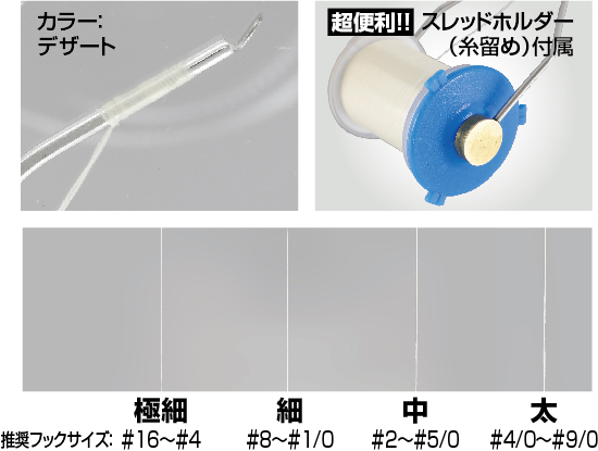 | 細 | ¥600 | デザート | 参考号数:約0.25号 | 長さ:40m | 4953873218682 |