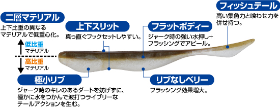 【フィッシュテール】:高い集魚力と喰わせ力を併せ持つ。