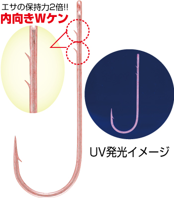 激しい誘いでもエサズレしにくい内向きWケン搭載で、エサの保持力2倍!!