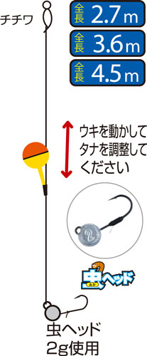 | 4.5 | 2 | ¥350 | 4.5m | 虫ヘッド2g | 4953873309823 |