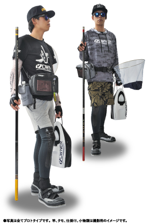 従来の2WAYストレッチ素材ではなく、保湿性、撥水性を持ったストレッチニット素材を採用。膝から下のスネの部分には生地の損傷を防ぐシリコンプリント。そして生地内側にはネオプレン3mm厚パットを装備し、ヒザ下を守ります。膝をつく作業が多い鮎釣りにおいて快適さを追求しました。