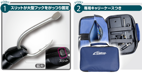 POINT①:スリットが大型フックをがっつり固定