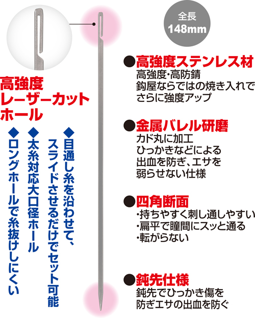 高強度・高耐久!オリジナル形状の目通し針が登場!!