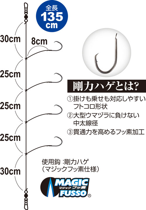 | 号数 | ハリス号数 | 幹糸号数 | 希望本体価格 | 使用鈎 | JANコード |